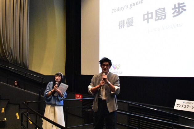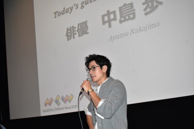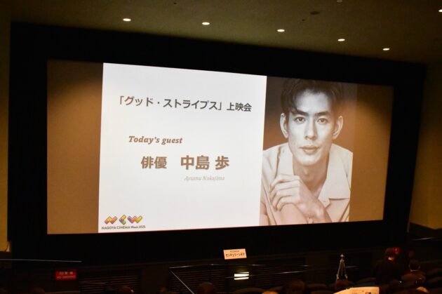 名古屋の映画情報サイトCine@nagoya(シネアナゴヤ)ではセンチュリーシネマ(名古屋パルコ東館8階)で開催された中島歩さんのトーク付き上映会を取材しました。中島さんは舞台「黒蜥蜴」(13/美輪明宏)で俳優デビュー。映画『グッド・ストライプス』や『いとみち』(21/横浜聡子)、『よだかの片想い』(22/安川有果)など多くの作品に出演。近年では映画「ナミビアの砂漠」(24/山中瑶子監督)や「ガンニバル シーズン2」(25/Disney+)、映画「ルノワール」(25/早川千絵監督/)、また、NHK連続テレビ小説「あんぱん」やNetflix「イクサガミ」の出演も話題になりました。この日、2015年に公開された主演映画『グッド・ストライプス』の上映前に登壇し、作品や映画への思いを語った中島さん。観客からの質問に答える時間も用意され、集まったファンとの時間を楽しんでいました。ありのままで面白い中島さんのトークに終始笑いに包まれた上映会の様子をレポートします。(取材日:2025年11月23日)