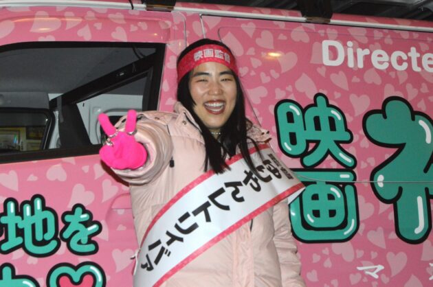 ナナちゃん人形の足元にピンク色の“禍禍CAR” ゆりやんレトリィバァ監督が車上から街頭演説