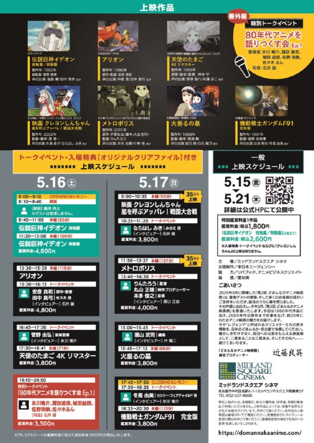 5/15(金)~21(木)<どまんなかアニメ映画祭>レジェンドたちの熱狂が、再び名古屋へ!チケットは4/8(水)より販売開始!